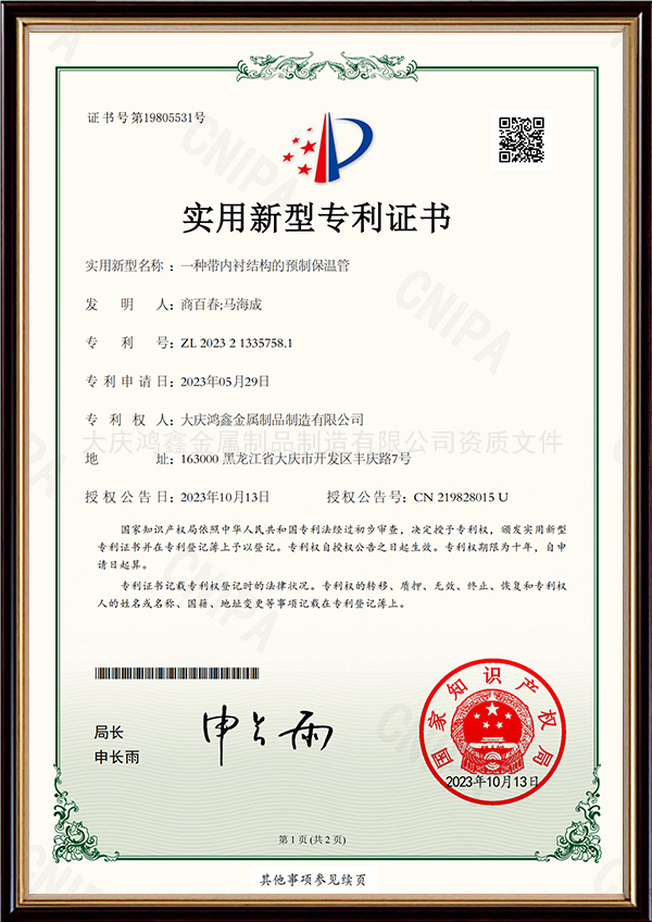 一種帶內(nèi)襯結(jié)構(gòu)的預(yù)制保溫管