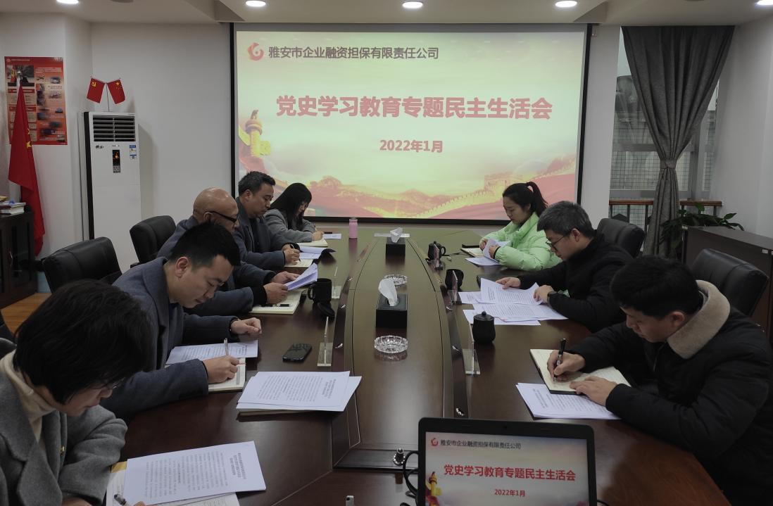 1月20日,市擔(dān)保公司黨支部召開黨史學(xué)習(xí)教育專題民主生活會,公司領(lǐng)導(dǎo)班子圍繞黨史學(xué)習(xí)教育專題民主生活會主題,結(jié)合工作實際,嚴(yán)肅認(rèn)真開展批評與自我批評。市財政局黨組成員、副局長康藜到會指導(dǎo),公司黨支部書記、董事長尹福健主持會議并代表領(lǐng)導(dǎo)班子作表態(tài)發(fā)言。