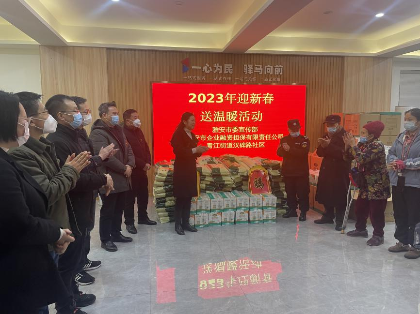 在新春佳節(jié)來臨之際,為讓困難群眾過上一個(gè)溫暖、祥和的春節(jié),1月13日,市擔(dān)保公司與市委宣傳部、漢碑路社區(qū)共同開展“迎新春送溫暖”活動(dòng),用愛心詮釋責(zé)任,用行動(dòng)書寫擔(dān)當(dāng)。