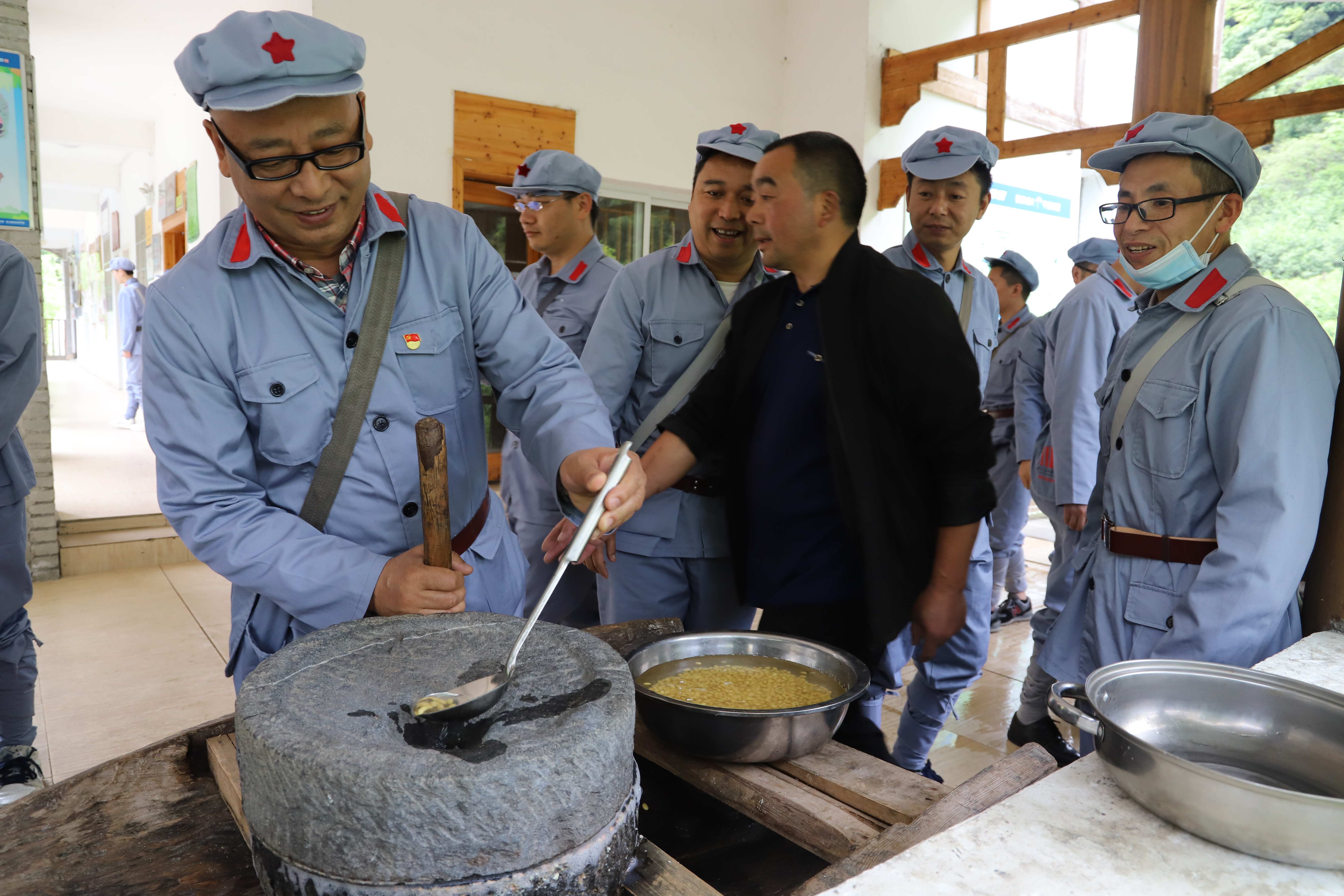 2021年5月20日,雅安夾金山分院黨史學(xué)習(xí)教育培訓(xùn)班體驗(yàn)農(nóng)耕生活之推磨子