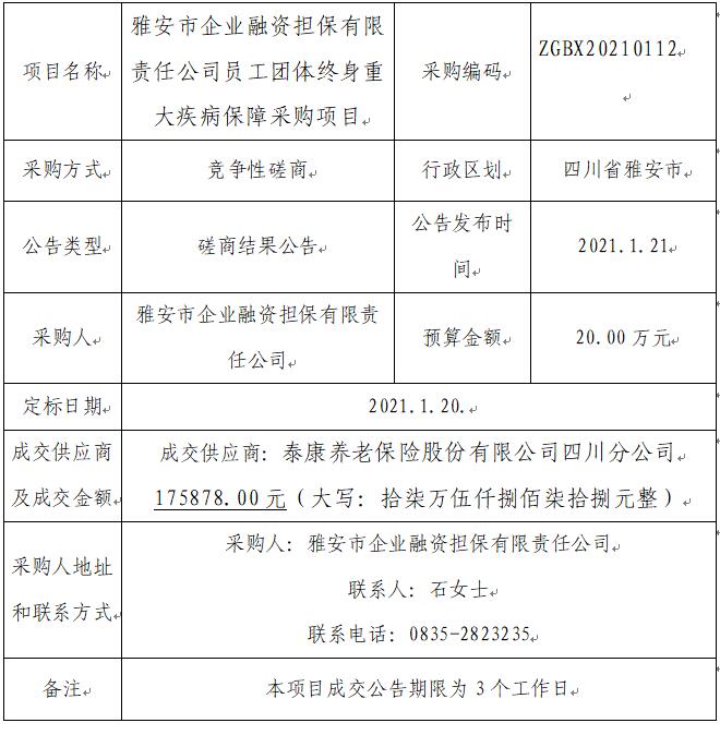 員工團(tuán)體終身重大疾病保障采購項(xiàng)目競爭性磋商結(jié)果公告